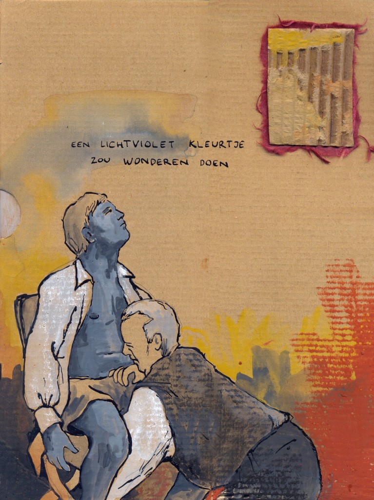 De man vermaakte zichzelf gedurende een hele poos. Zo had ik de tijd om rond te kijken en een persoonlijke imaginaire toets te geven aan het geheel. Deze kamer moest al zeker van die droefheid afgeholpen worden. Een lichtviolet kleurtje zou wonderen doen, bedacht ik me. Moesten er nog wat voleiken kasten tegen de muur staan, zou het geheel ook gezelligheid kunnen uitstralen, iets wat deze ruimte zeker kon gebruiken. De man nam mijn lid in zijn mond. Ondertussen beroerde hij met zijn vingers mijn borstkas. Ik merkte op dat de nagels van zeven vingers netjes geknipt waren. Drie overige vingers waren minder aantrekkelijk, met nog lange, vieze nagels aan. Tijdens de pijpsessie zocht ik de ruimte af naar een nagelknipper, met succes. De man moet in afwachting van deze afspraak zijn nagels staan knippen hebben en net niet rondgeraakt zijn. Hij ging steeds feller te werk en rukte tot ik bijna klaarkwam. Ik hield hem tegen. Hij leidde me naar de zetel en fluisterde dat hij me graag had doen klaarkomen. Ik stemde in en dacht aan mijn ideale partner. Mijn lichaam schokte van intensiteit; de man genoot zichtbaar van het strakker worden van de buikspieren. Het klaarkomen veroorzaakte een schokgolf van rillingen, wat een brede glimlach toverde op het gelaat van de man. Hij keek me aan en liet me dan los. De overtuiging stond in zijn aangezicht te lezen: ik heb het nog steeds.