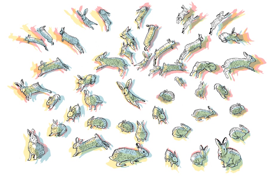 Mijn grijze konijn was meegaand. Nooit beet ze van zich af. Niet als ik haar na een uur baby spelen onder een deken in de poppenwagen vergat uit de brandende zon te rijden. Niet als ik haar voor de veertigste maal over de zelfgeconstrueerde wip-wap in mijn achtertuincircustent (50 cent entree) liet huppelen. Niet als ik haar in bad deed en op de heetste stand haar vachtje föhnde, alvorens ik met kam en wijsvingers een kuif over haar ruggengraat zou touperen (‘Kijk, een draakje!’).