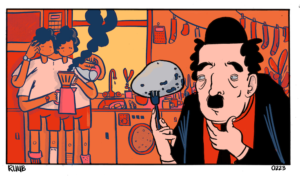Ik gooide de kluwen kletsnatte rechter- en linkersokken in de wasmand. Bij nader inzien leek het gezicht op Charlie Chaplin. Of nee: hij léék er niet op, hij wás het gewoon.